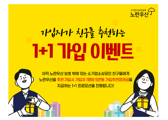 의무가입이 아님에도 해마다 가입하는 자영업자 분들이 늘고 있다고 합니다. 요즘에는 가입자가 지인을 추천하면 1명당 5만원의 가입추천 장려금을 지급하는 1+1 가입이벤트도 진행하고 있습니다.